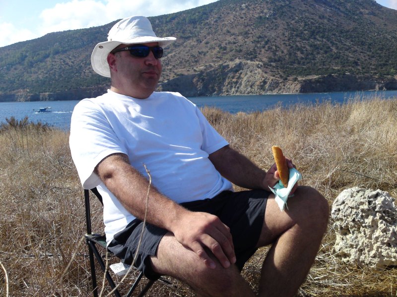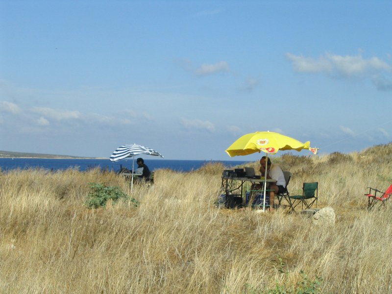 5B4ZN operating the second station with the FT-847 and BigIR antenna.