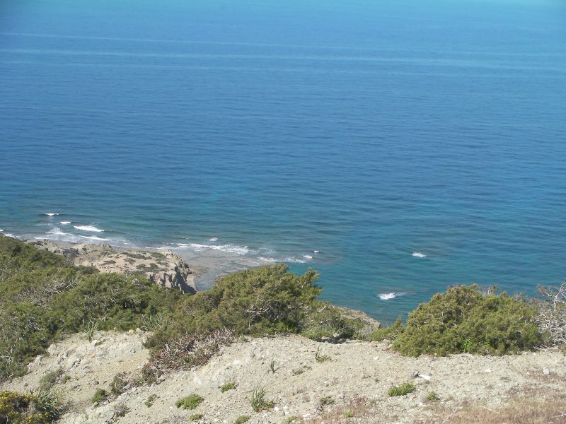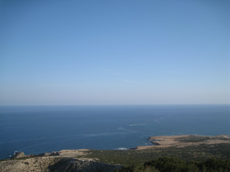 View from the Lighthouse. "Mazaki island", some rocks just above sea level, is visible around the middle of the photo. (31/3/10) |